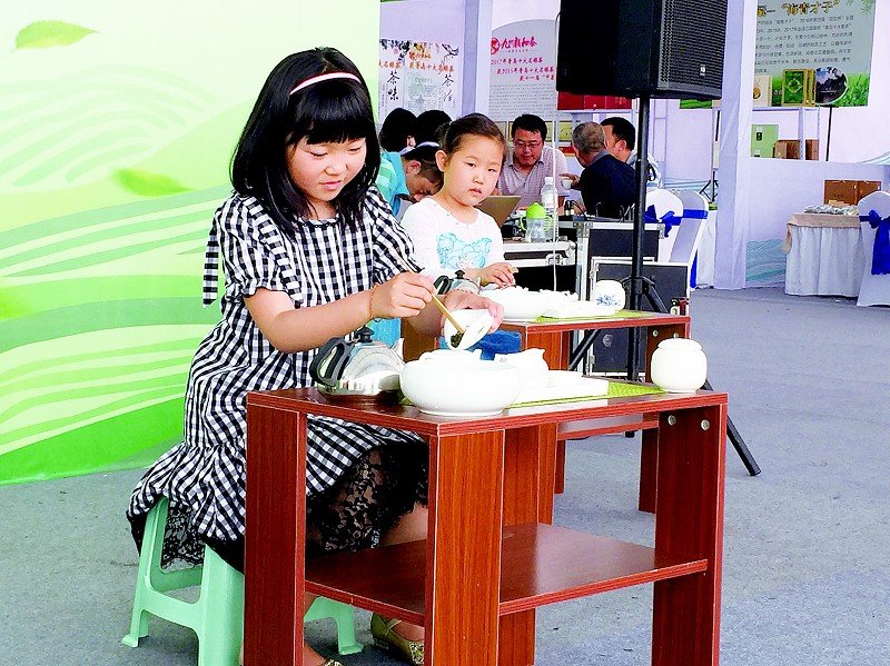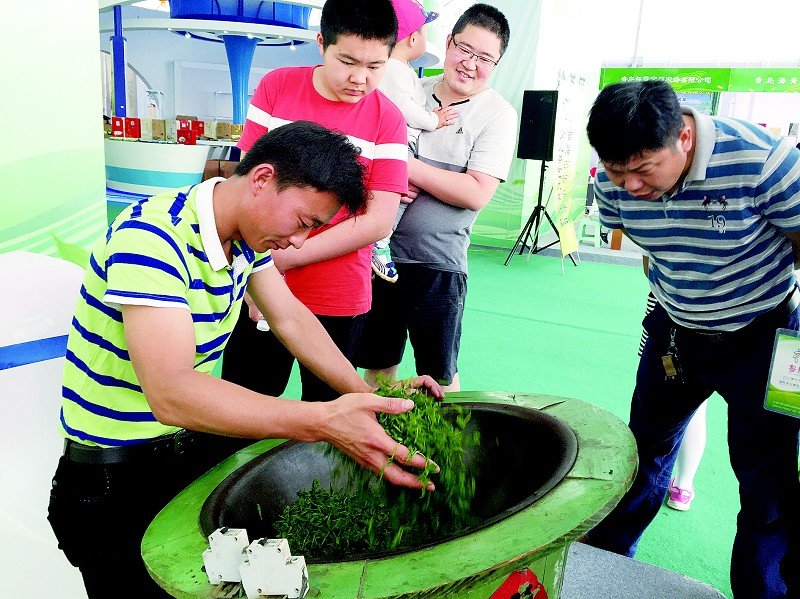 茶博會同時舉辦了2017 琊海青國際茶文化節,海青鎮茶業名企30家參展,其中有5家是今年“青島十大名茶”的獲獎茶企,12家是本年度獲獎茶企,現場有炒茶環節,參與炒茶的是來自8家海青鎮獲獎茶企。本次茶博會還特設了少兒茶藝大賽的海選現場,弘揚茶文化從娃娃抓起。 (劉騰)